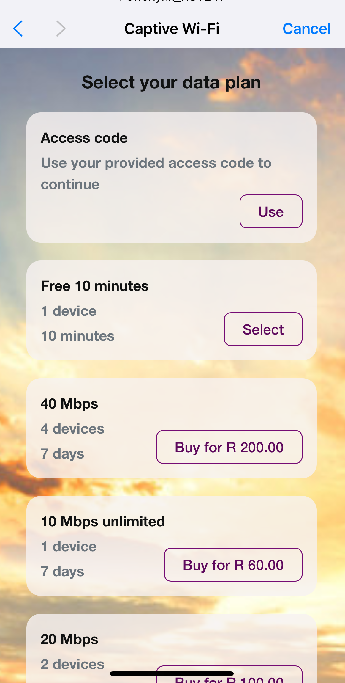 A new feature lets you shorten the user journey by setting a default data plan for customers connecting to a location. Once connected, they won’t see a select data plan page, but a default one will be assigned.