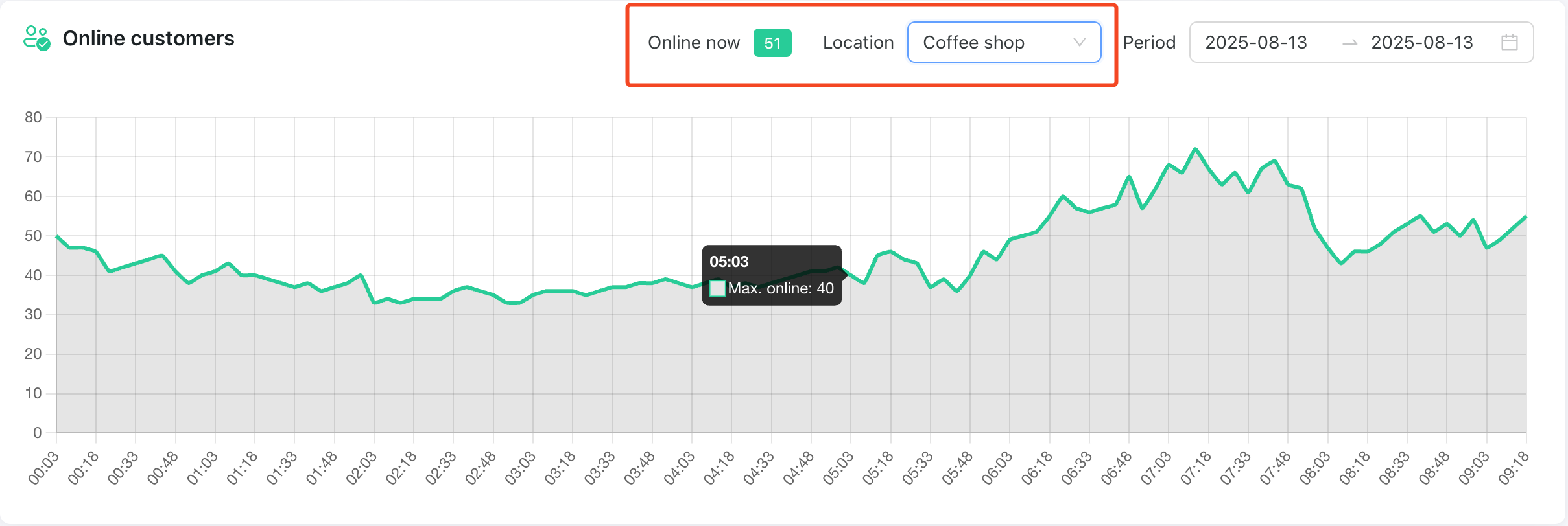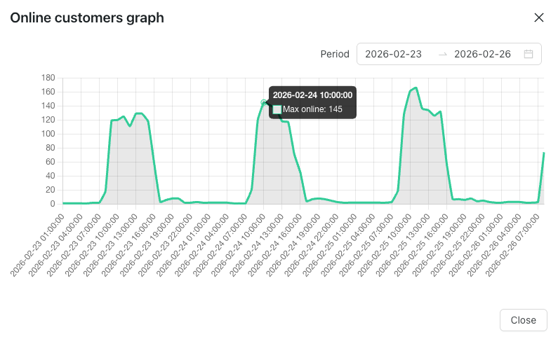 Now, when you select a specific location on the “Online customers“ graph, it updates the “Online now“ counter and shows the number of online customers at that specific location. It used to show the total number of online customers across all locations.