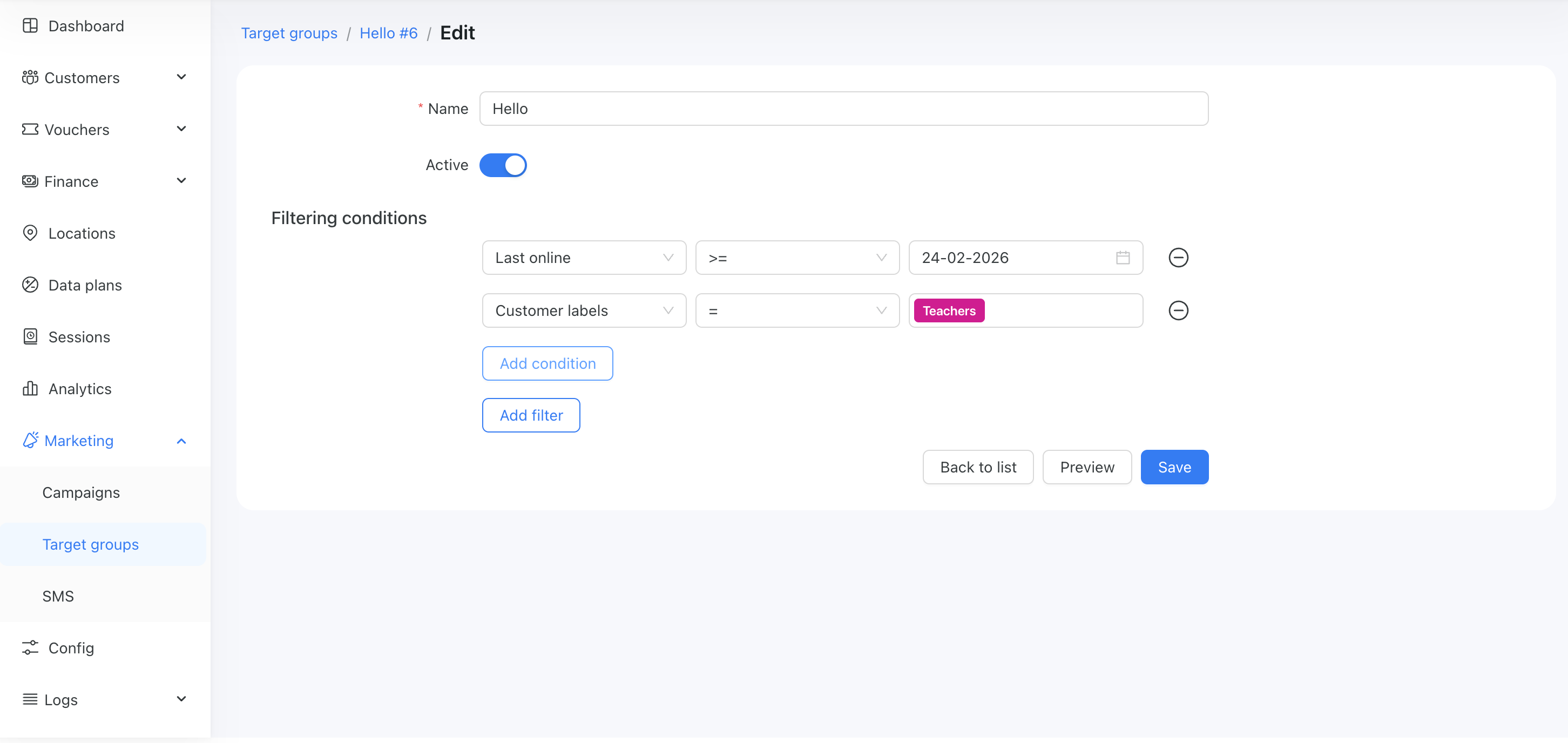 You can now filter customers by labels and use these target groups for your advertisements.