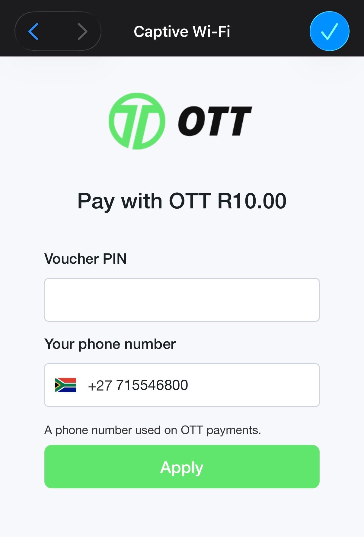 Customers in South Africa can now make payments using the OTT voucher.