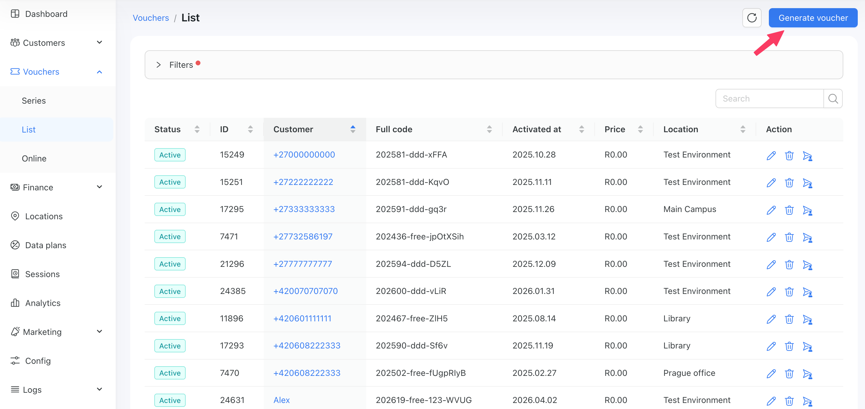 You can do it from: Vouchers → List → Generate voucher